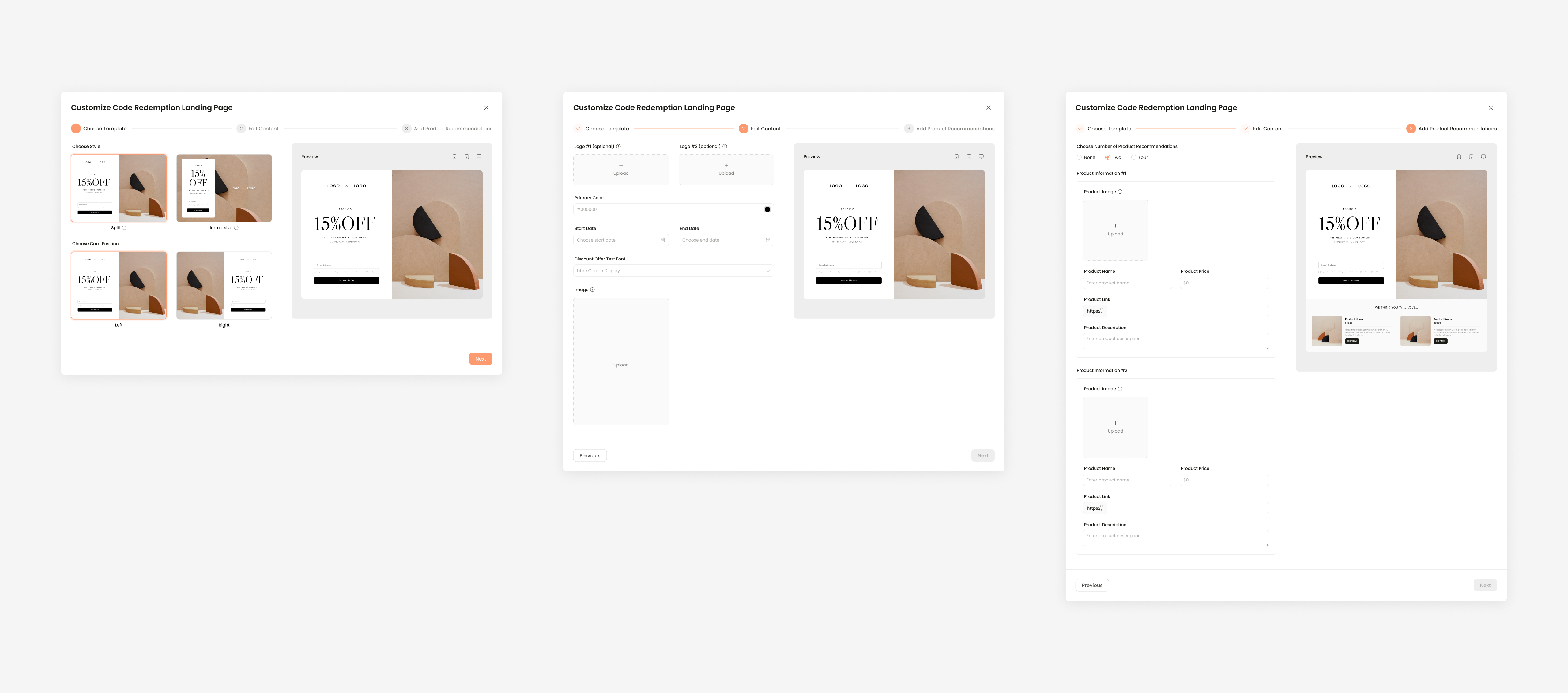 Discount code or gift redemption landing pages are essential in co-marketing campaigns, but they can be a hassle for brands to create. Brands need to build a functional website that collects emails and displays discount codes. Additionally, they need the ability to customize these landing pages to align with their branding.