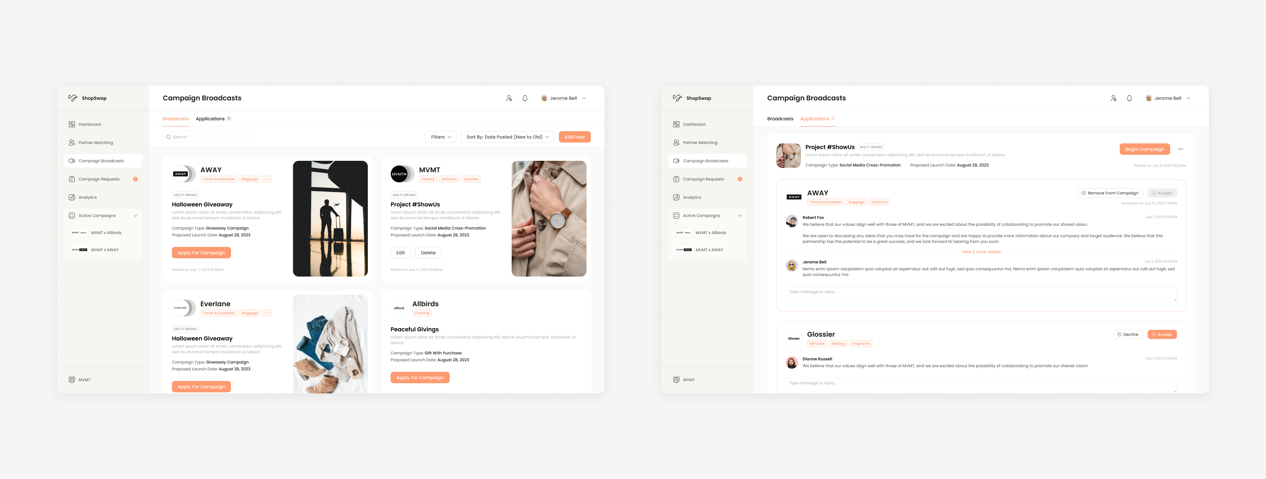 - Designed and developed a new ‘Campaign Broadcasts’ feature that enables brands to post and apply for partnership opportunities, as well as manage their broadcasts and applications.